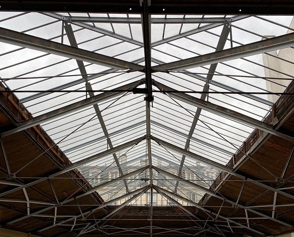 Dans ce bâtiment, situé à deux pas du Château de Versailles, se déroulait la vente aux enchères des chevaux du Château. Le réaménagement des locaux et la création d'une verrière en verre feuilleté de sécurité, Plastofloat, et de contrôle solaire va permettre aux services administratifs de la Cour d'Appel de Versailles d'y installer des bureaux.